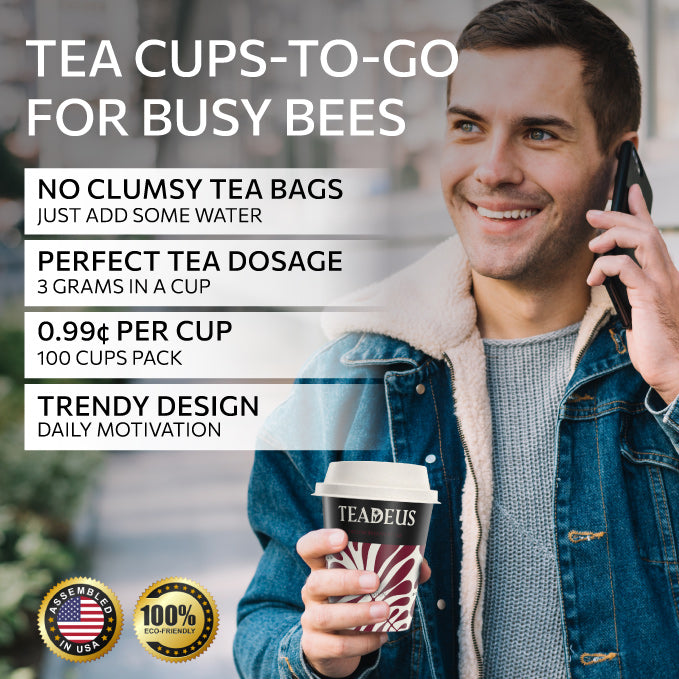 Teadeus cups are your hassle-free, eco-friendly solution for delicious tea. Packed with top-notch blends, these cups offer convenience and great taste, all while being kind to the environment. It's more than a cup – it's tea made simple and satisfying.