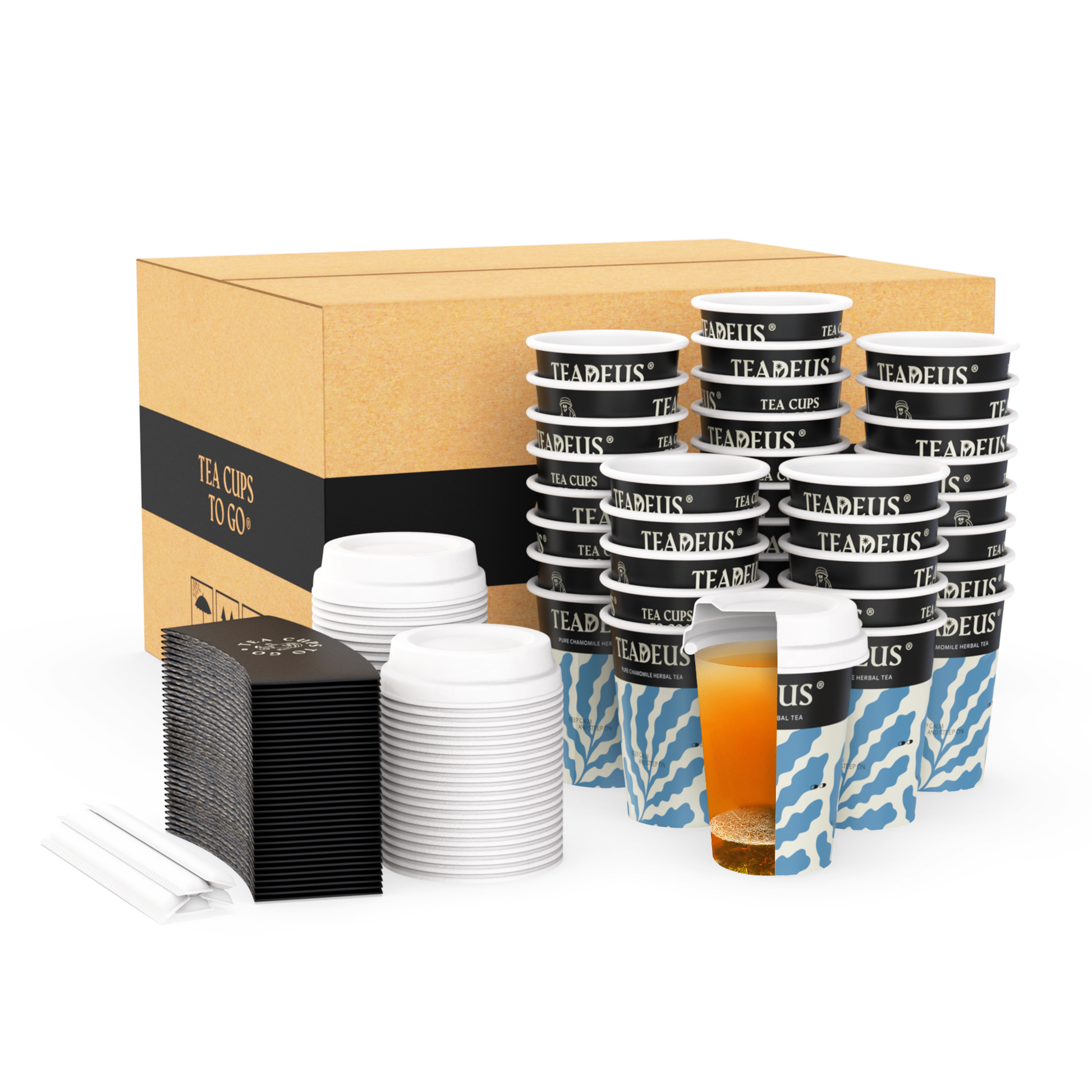 With our tea cups, you'll also get all you need to enjoy your tea anywhere and anytime. The set includes a wooden stirrer, a paper lid, and a paper sleeve for each cup.