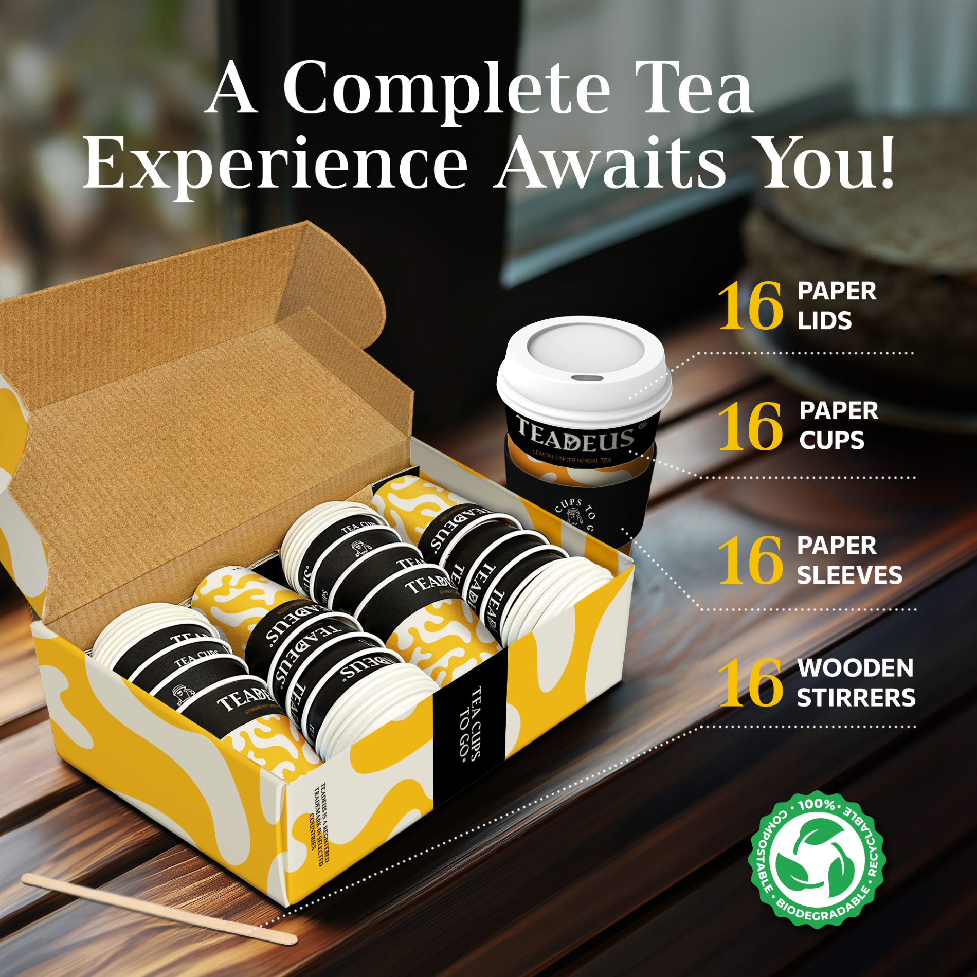 With our tea cups, you'll also get all you need to enjoy your tea anywhere and anytime. The set includes a wooden stirrer, a paper lid, and a paper sleeve for each cup.