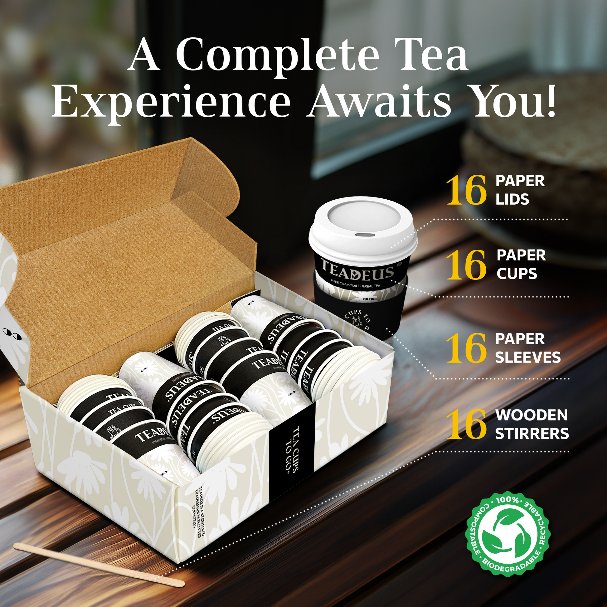 With our tea cups, you'll also get all you need to enjoy your tea anywhere and anytime. The set includes a wooden stirrer, a paper lid, and a paper sleeve for each cup.