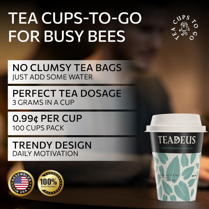 Teadeus cups are your hassle-free, eco-friendly solution for delicious tea. Packed with top-notch blends, these cups offer convenience and great taste, all while being kind to the environment. It's more than a cup – it's tea made simple and satisfying.