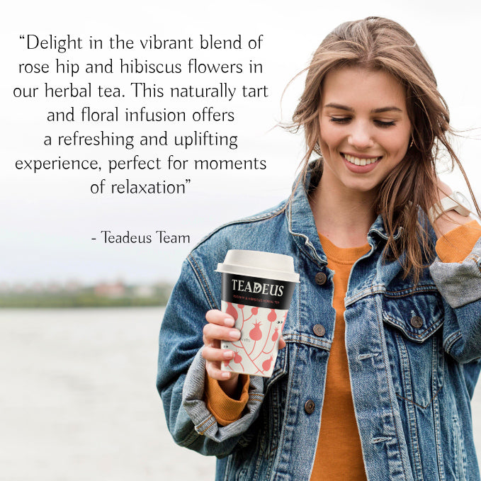 Envision this – a sunset stroll by the beach, waves gently lapping the shore, and the calming aroma of Teadeus Rose hip & Hibiscus Tea filling the air. As the floral notes unfold, worries seem to melt away, replaced by a sense of calm and serenity. This blend of rosehip and hibiscus petals is a melody of nature's finest – each sip a reminder to slow down and savor life's simple pleasures.