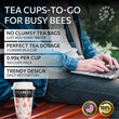 No more sacrificing flavor for convenience! Our innovative paper teacups with tea at the bottom and covered by a special membrane replace traditional paper cups and tea bags, so you can enjoy a high-quality cuppa on-the-go hassle-free. But that's not all – our To Go Cups come adorned with daily affirmations that brighten your sip and inspire your day.